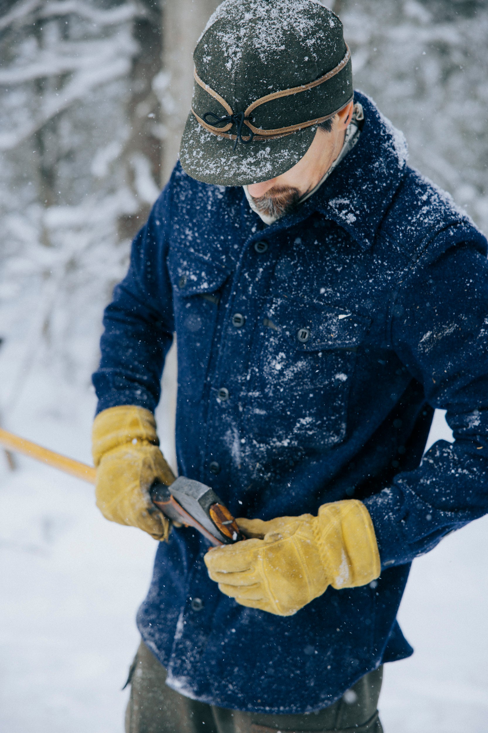 Denim is a high abrasion—and tear-resistant weave, making it a staple in workwear. Instead of using cotton, we produce our Denim from 100% WeatherWool-certified Wool. You'll find our Denim to be much softer and cozier than traditional cotton denim.